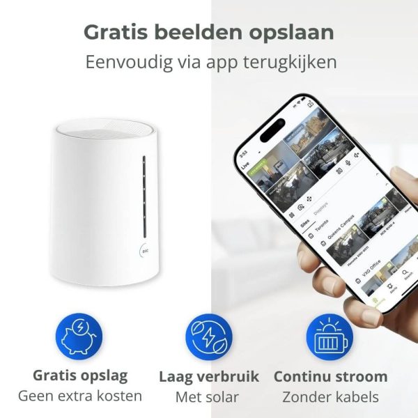 Nee, er zijn geen maandelijkse kosten. De beelden worden lokaal opgeslagen op de meegeleverde geheugenkaart in het basisstation. Cloudopslag is optioneel beschikbaar via de app, maar niet nodig.