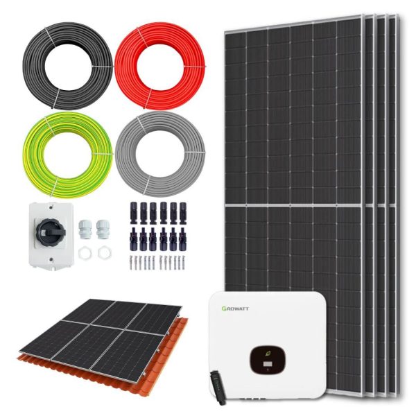 Het pakket bestaat uit 4 krachtige Restar 560 Wp zonnepanelen, een Growatt (1 fase) omvormer, een wifi monitoring module en alle benodigde bekabeling en montagematerialen.
